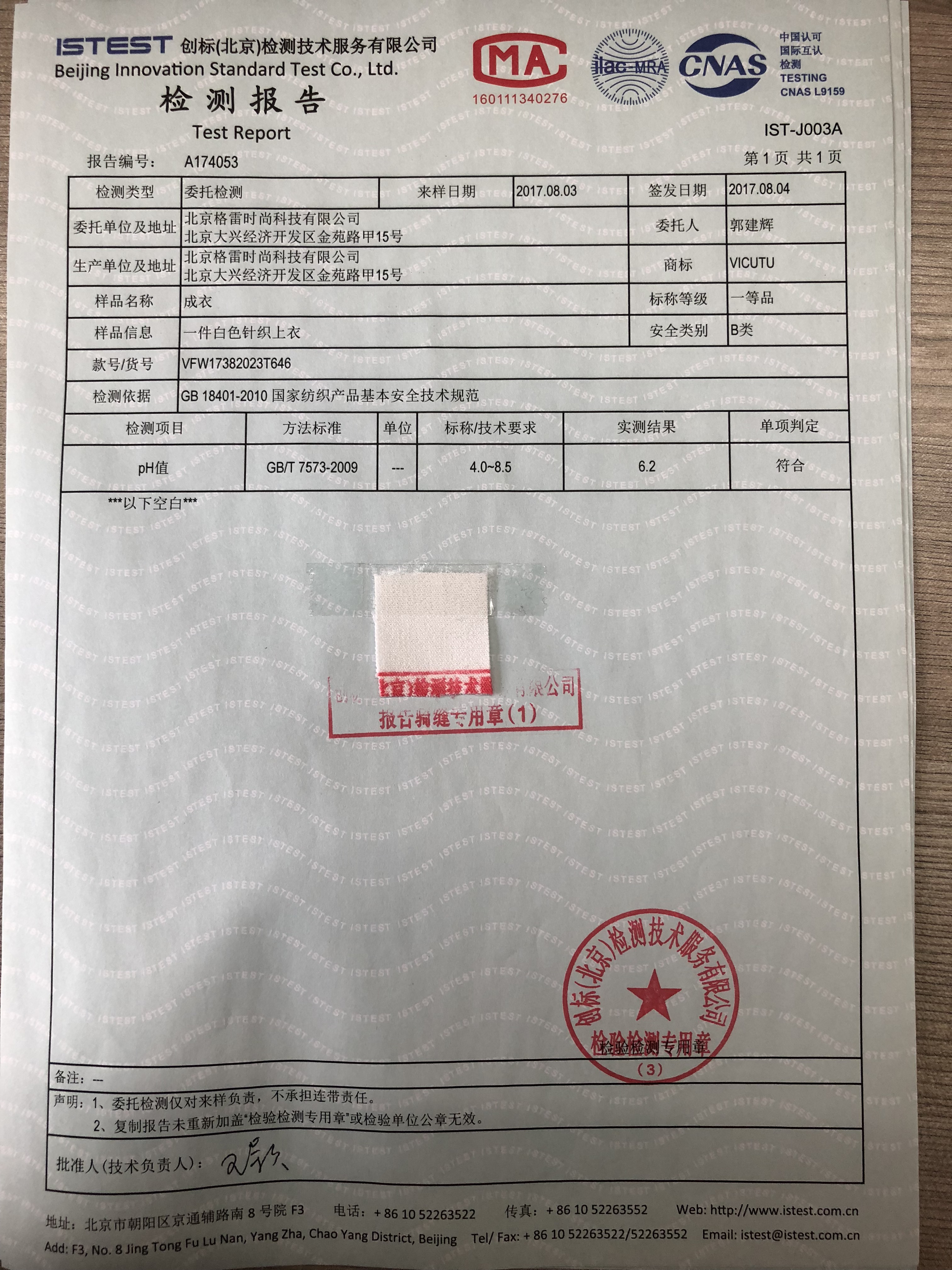 Index of /质检报告/投诉类成品检测/17秋冬成衣报告/VFW17382023